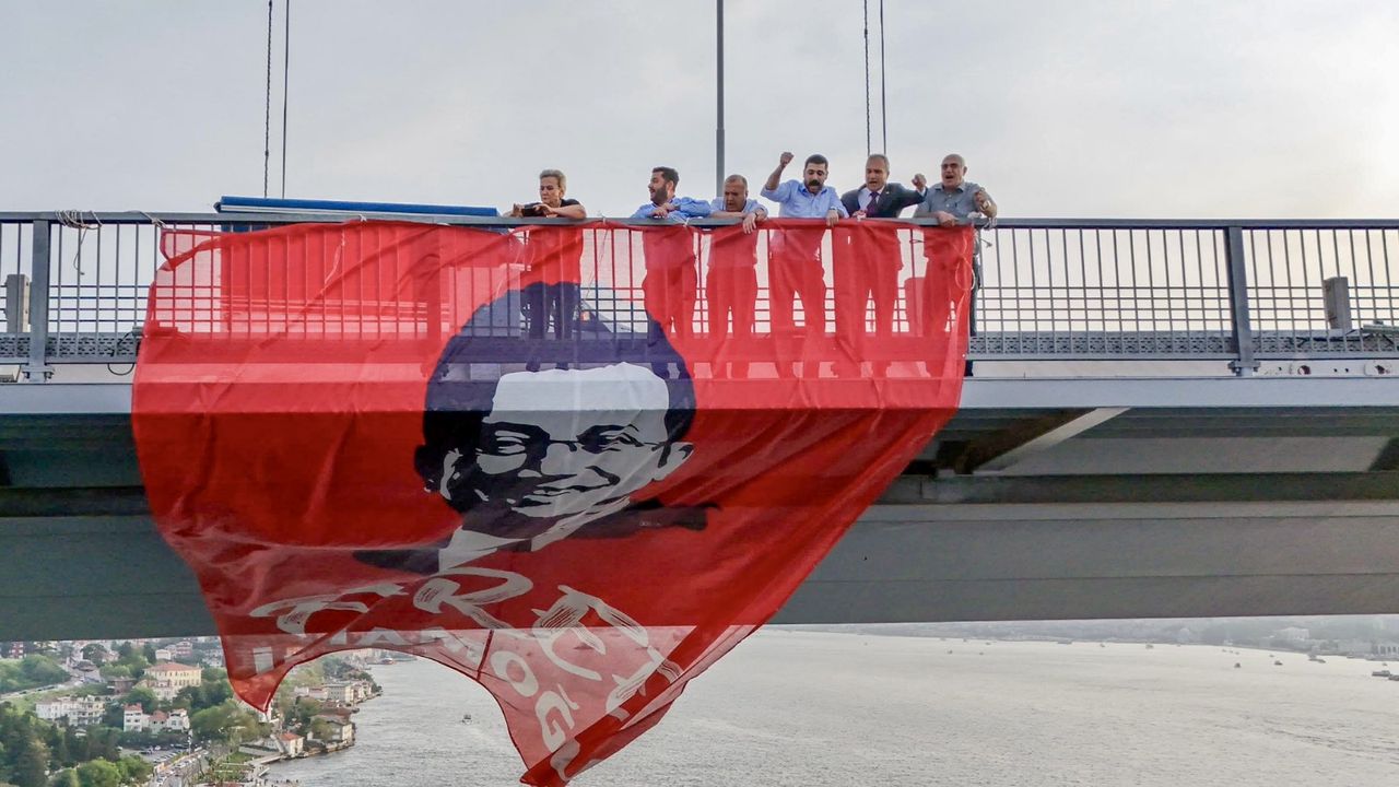 İBB'ye yönelik soruşturmalar kapsamında tutuklu bulunan İBB Başkanı ve CHP'nin cumhurbaşkanı adayı Ekrem İmamoğlu'nun görsellerinin savcılık tarafından yasaklanması üzerine CHP milletvekilleri, CHP Genel Başkanı Özgür Özel ve Sosyalist Enternasyonal heyetinin, Boğaziçi Köprüsü’nün altından geçtikleri sırada köprüden ‘Free İmamoğlu’, ‘İmamoğlu’na özgürlük’ yazılı pankart açtı. Yapılan eylemin ardından İstanbul Cumhuriyet Başsavcılığı’ndan ‘adli işlem başlatıldı’ duyurusu yapıldı. Başsavcılıktan yapılan duyuruda, “24.05.2025 günü Saat 19:40 sıralarında 15 Temmuz Şehitler Köprüsü Kuzey Yol Girişinde, CHP Milletvekilleri Mahmut Tanal, Suat Özçağdaş, Ali Gökçek, İlhami Özcan Aygun, Ahmet Baran Yazgan ve Nimet Özdemir tarafından, köprüden sarkacak şekilde üzerinde Ekrem İmamoğlu’nun siluetinin bulunduğu ve üzerinde ‘free imamoğlu’ yazılı pankartı astıkları görülmüş olup; Boğaziçi Köprüleri Koruma Şube Müdürlüğü görevlileri tarafından olaya müdahale edilerek pankart kaldırılmış, konu ile ilgili adli işlemlere başlanmıştır” denildi.