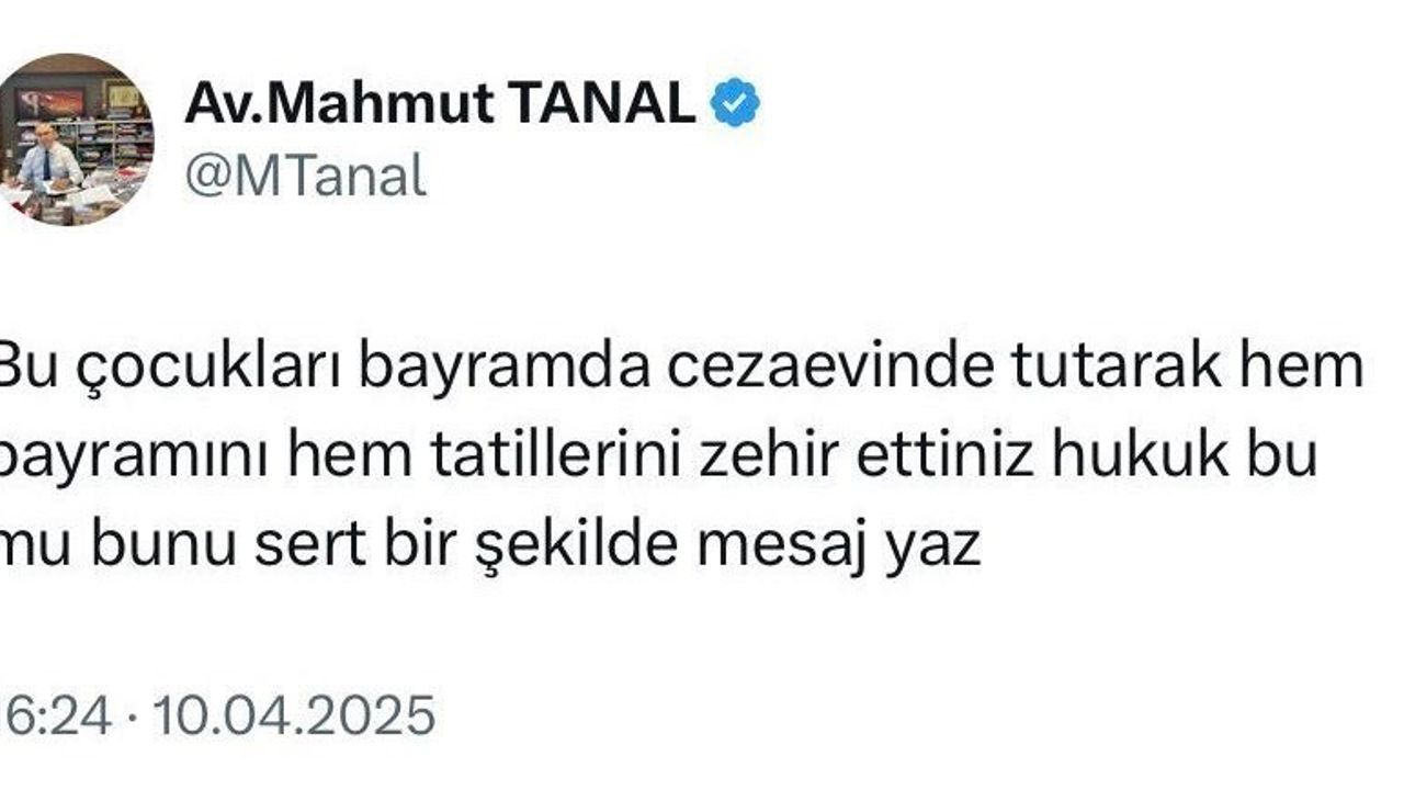 "Bu çocukları bayramda cezaevinde tutarak hem bayramını hem tatillerini zehir ettiniz hukuk bu mu bunu sert bir şekilde mesaj yaz."