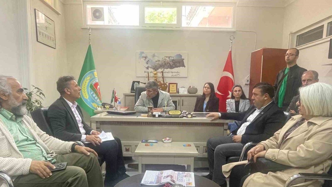 Kestel Ziraat Odasını ziyaret eden Sarıbal, Oda Başkanı Eyüp Kılıç, yönetim kurulu üyeleri ve çiftçilerle görüştü, zirai dona ilişkin yaşanan sorunları dinledi.