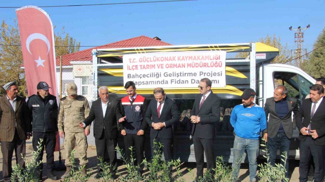 Düzenlenen fidan dağıtım törenine Güçlükonak Kaymakamı Semih Memiş, İlçe Belediye Başkanı Selahattin Aktuğ, İl Tarım ve Orman Müdürü Oktay Sezgin, İlçe Emniyet Amiri Başkomiser Kudret Yaman, İlçe Jandarma Komutanı Binbaşı Yusuf Karadeniz, kurum müdürleri ve çiftçiler katıldı.