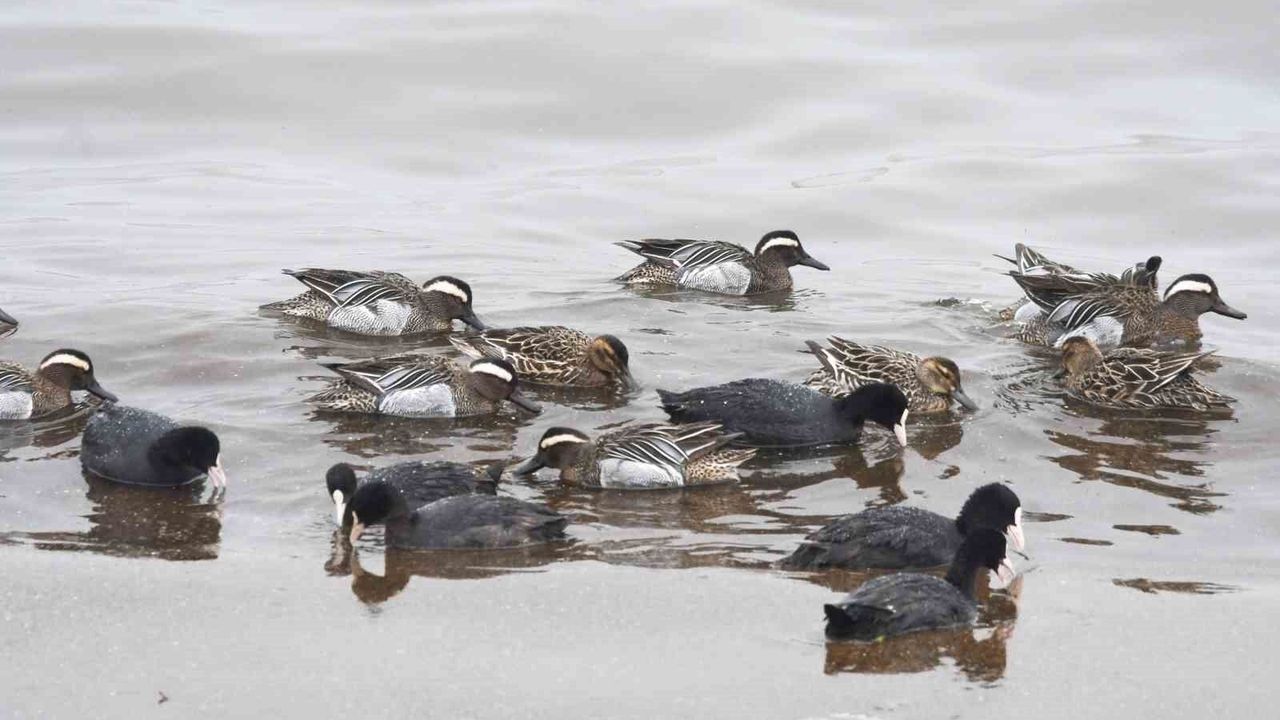 Bitlis'in Tatvan ilçesinde Van Gölü sahili, göç yolculuğundaki kuşlara ev sahipliği yapmaya devam ediyor. Göçmen bir tür olan Çıkrıkçın ördekleri, kısa süreli konaklama için Tatvan sahilinde görüntülendi.