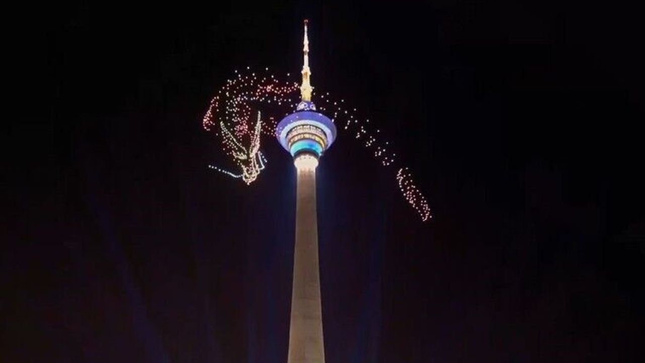 Çin’in Tianjin kentindeki Radyo ve Televizyon Kulesi’nin çevresinde gerçekleştirilen dron gösterisi renkli görüntüler oluşturdu. Yaklaşık bin dron kullanılarak oluşturulan “uçan ejderha” kulenin etrafında tur attı. İlginç dron gösterisi şehrin büyük bir bölümünde izlendi.
