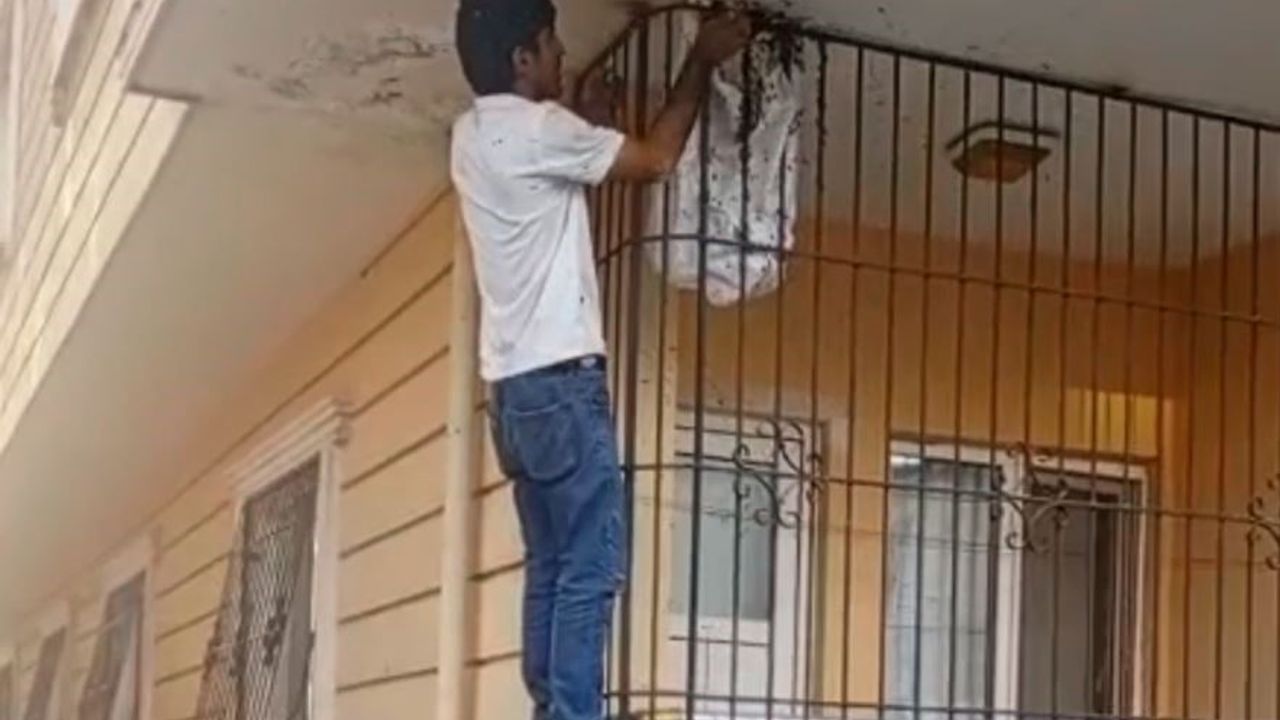 Siirt’in Kurtalan ilçesinde Muhammet Rahmi Mikyas isimli arıcı, bir evde bulunan arı oğulunu çıplak elle topladı.