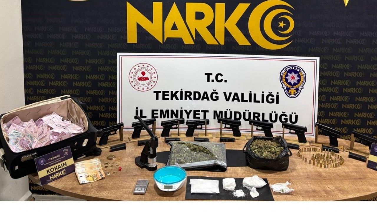 Tekirdağ Çorlu’da düzenlenen narkotik operasyonunda esrar, kokain, ruhsatsız tabancalar ve yüklü miktarda para ele geçirildi.