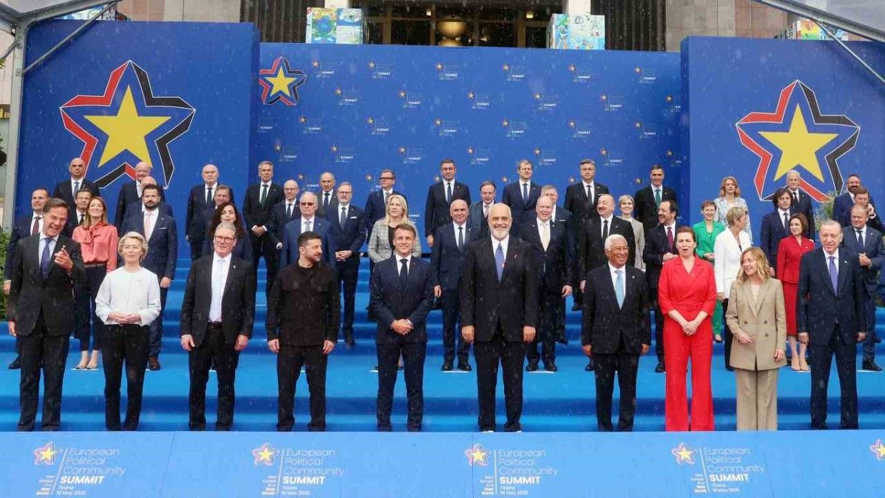 Cumhurbaşkanı Recep Tayyip Erdoğan, Arnavutluk’un başkenti Tiran’da düzenlenen Avrupa Siyasi Topluluğu 6. Zirvesi’ne katılıyor. Cumhurbaşkanı Erdoğan, Opera Binası’nda yapılan karşılama töreninin ardından liderler ile aile fotoğrafı çektirdi. Erdoğan’ın sağında İtalya Başbakanı Giorgia Meloni, solunda Almanya Başbakanı Friedrich Merz yer aldı. Erdoğan fotoğraf çekiminin öncesinde Almanya Başbakanı Merz ile ayaküstü sohbet etti.