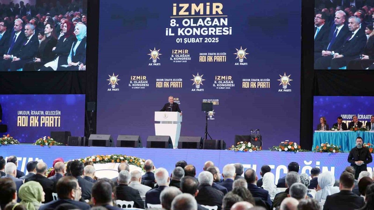 Cumhurbaşkanı Recep Tayyip Erdoğan, AK Parti 8’inci Olağan İl Kongresi’ne katılmak üzere İzmir’e geldi. Halkapınar Spor Salonu’nda düzenlenen kongrede partililere seslenen Erdoğan, "İzmir’i temsil etmeyi beceremeyenler bu şehrin ülkenin içeride ve dışarıda yürüttüğü mücadelelere kayıtsız bir yer olduğu itibarını vermek için de özel bir gayret sergiliyorlar. Halbuki İzmir yıllarca mazlumların derdiyle dertlenmiş yüreğini de toprağını da onlara açmış bir şehirdir. Osmanlı’nın son döneminde Ege’nin muhtelif yerlerinde Balkanlardan Kafkaslardan diğer yerlerden evlerini terk edip gelmek zorunda kalan yüz binler milyonlar önce İzmir’e sığınmıştır. Bir kısmı ülkenin başka yerlerine gitse de önemli bir bölümü de İzmir’i kendine yeni vatan olarak seçmiştir. Aynı şekilde ülkemiz içinde nüfus hareketlerinin çok arttığı dönemlerde İzmir; Mardin’den Erzurum’a Konya’dan Kars’a Afyon’dan Ağrı’ya Sivas’tan Balıkesir’e kadar pek çok farklı şehirden insanların yeni yuvası olmuştur. Gerisinde nice acı hikayeleri nice umut arayışlarını barındıran böylesine bir demografik zenginliğe sahip İzmir’in gündemini Türkiye’den ayrıştırmaya kalkmak en hafif tabiriyle gaflettir" dedi.