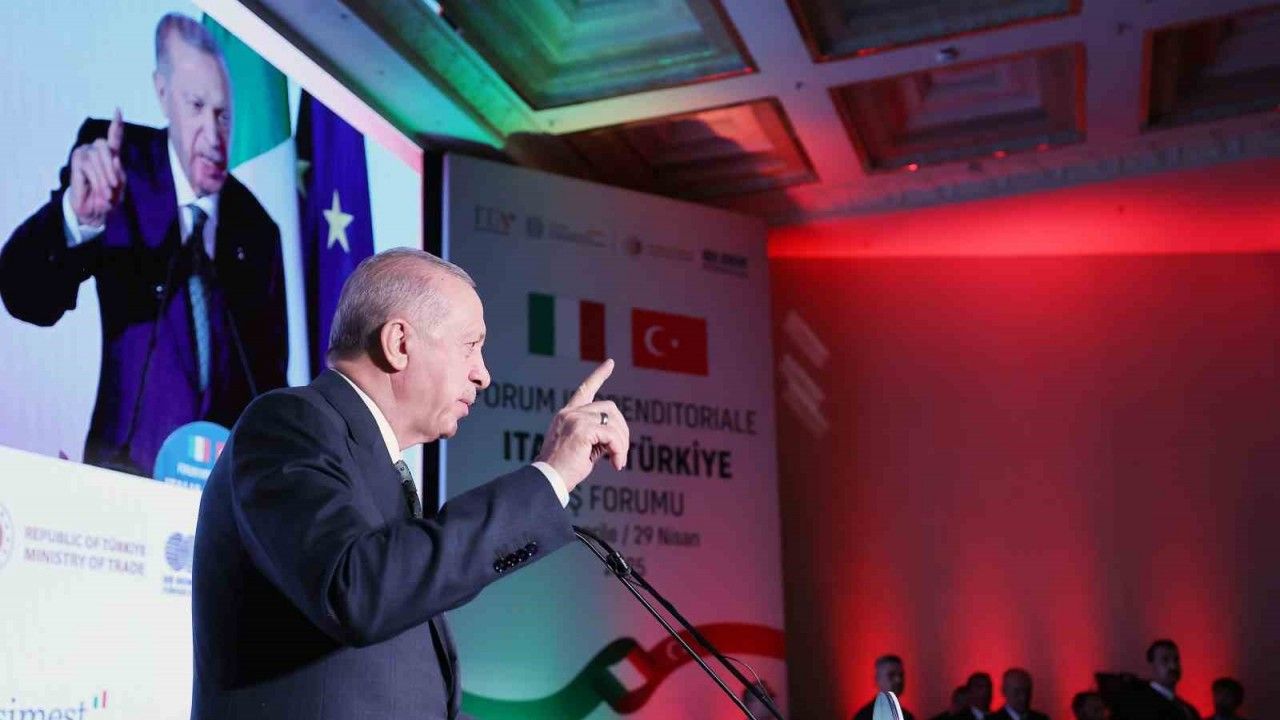 İtalya ve Türkiye arasındaki ticari ilişkilerin tüm küresel sorunlara rağmen Covid-19 salgınından bu yana artış eğiliminde olduğunu vurgulayan Erdoğan, "2020 yılında 17,3 milyar dolar seviyesinde olan ticaret hacmimiz, 2024 yılında neredeyse ikiye katlanarak 32 milyar doları aştı. Bugün Türkiye’deki İtalyan sermayesi dolaylı yollardan gelenlerle birlikte 5 milyar dolara, İtalya’daki Türk sermayesi ise son yıllarda önemli atılım göstererek bir milyar dolara yaklaştı. Türk firmaları nasıl İtalya’yı Avrupa pazarına açılan bir kapı olarak görüyorsa, isteriz ki İtalyan firmaları da Türkiye’yi Asya’ya, Orta Doğu’ya ve Afrika’ya açılan bir kapı olarak değerlendirsinler. İstanbul’dan sadece birkaç saatlik uçuş mesafesinde iki milyar nüfusa erişilebiliyor. Türk Hava Yollarımız da İtalya’nın dokuz şehrini İstanbul’a bağlıyor. Ticaret, yatırım ve ulaşım imkanlarının barındırdığı bu muazzam potansiyel, bizleri büyük ve iddialı hedefler belirmeye teşvik ediyor" dedi.
