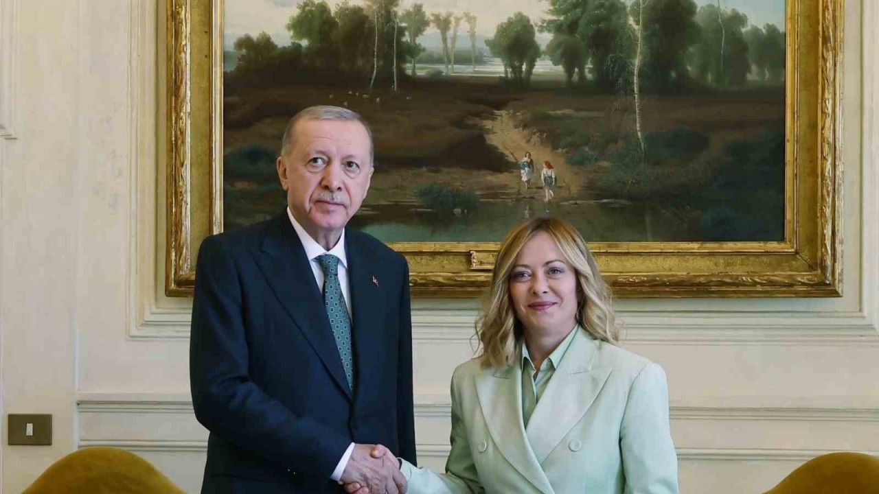 Cumhurbaşkanı Recep Tayyip Erdoğan, resmi temaslar için geldiği İtalya’da Başbakan Giorgia Meloni ile bir araya geldi.