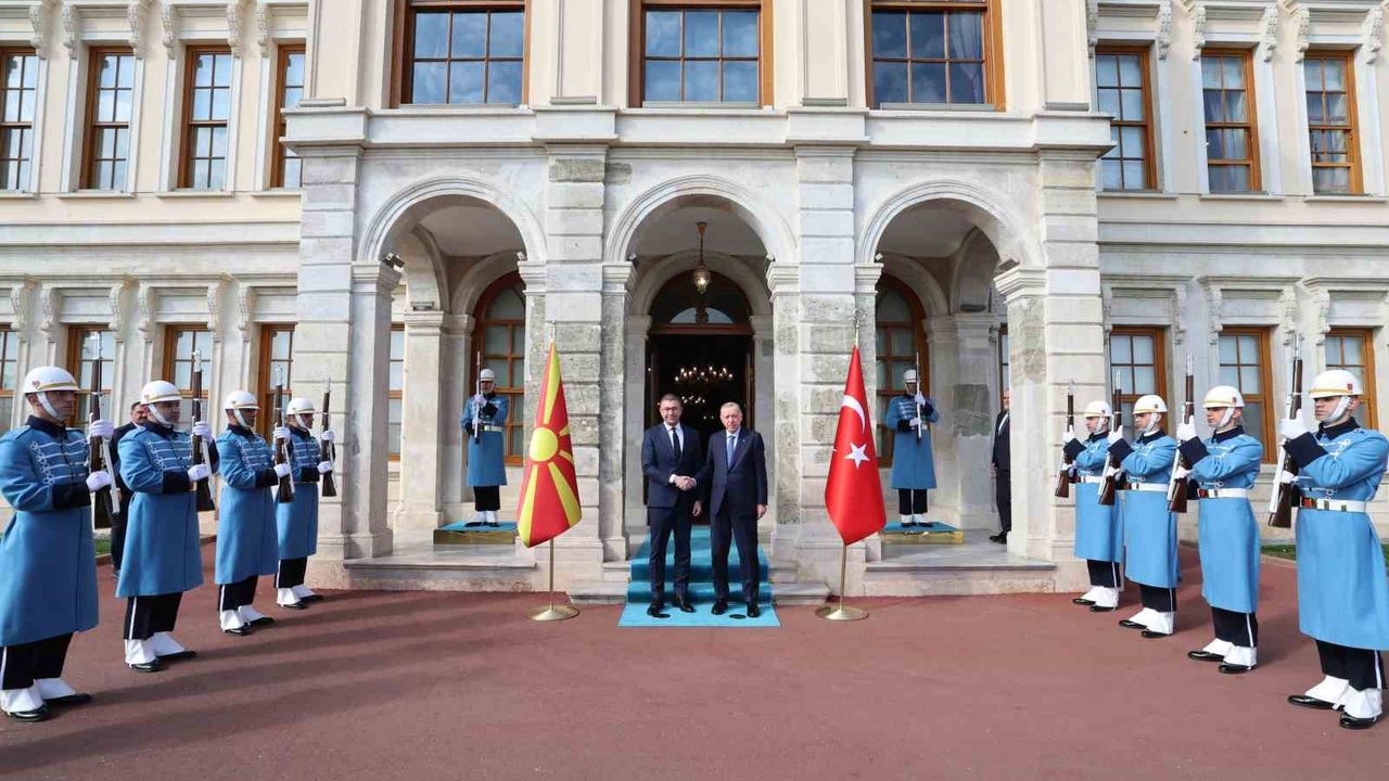Cumhurbaşkanı Recep Tayyip Erdoğan, Kuzey Makedonya Başbakanı Hristijan Mickoski’yi Cumhurbaşkanlığı Dolmabahçe Çalışma Ofisi’nde kabul etti. Saat 14.30’da başlayan toplantı yaklaşık 2 buçuk saat sürdü. Çalışma yemeğinin ardından Ortak Siyasi Bildiri İmza Töreni ve ortak basın toplantısı düzenlendi. Programa, Dışişleri Bakanı Hakan Fidan, Çevre, Şehircilik ve İklim Değişikliği Bakanı Murat Kurum, İletişim Başkanı Fahrettin Altun ile Cumhurbaşkanı Dış Politika ve Güvenlik Başdanışmanı Büyükelçi Akif Çağatay Kılıç da katıldı.