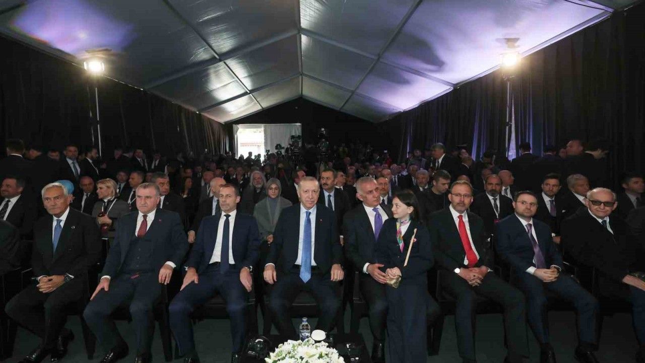 Türkiye’de son 23 yılda spora yönelik yapılan yatırımlara dikkat çeken Erdoğan, "Spor yatırımları noktasında Türkiye’yi çok farklı bir lige taşıdık. İllerimizin ihtiyaçlarına göre yeni spor tesislerini hizmete açtık. Toplam spor tesisi sayısını bin 575’ten 4 bin 470’e yükselttik. Futbol, basketbol, voleybol sahalarını mahallelere kadar yaydık. Futbol sahası sayımız 595’ten bin 365’e çıktı. Türkiye’nin her köşesine stadyumlar, yüzme havuzları, futbol sahaları, gençlik merkezleri, spor salonları inşa ettik. Spor salonlarımızın sayısını 372’den 904’e ulaştırdık. Futbolda çoğu ömrünü tamamlamış stadyumları yıkıp, yerlerine uluslararası standartlara sahip yeni tesisler inşa ettik. Türkiye genelinde yaptığımız stadyumlardan 38’i hizmete girdi. 4 tanesinin yapımı, 4 tanesinin proje ihale çalışmaları devam ediyor" şeklinde konuştu.