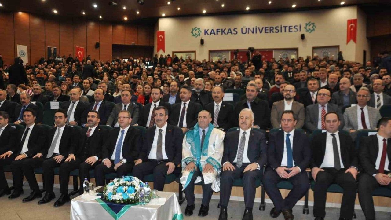 Cumhurbaşkanı Yardımcısı Cevdet Yılmaz, Kafkas Üniversitesi Ahmet Arslan Kongre Merkezi’nde KAÜ toplu açılış programına katıldı.