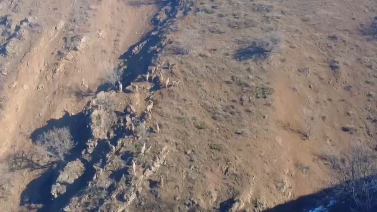 Elazığ’da koruma altındaki dağ keçileri büyük bir sürü halinde görüntülendi.