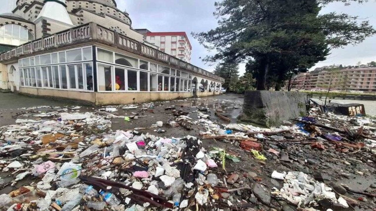 Geçtiğimiz akşam saatlerinde başlayarak dün akşam saatlerine kadar devam eden fırtına Rize’yi olumsuz etkiledi. Karaya vuran dev dalgalar Karadeniz Sahil Yolu’nu sular altında bıraktı. Karadeniz’in dev dalgaları doğaya bırakılan çöpleri de beraberinde getirdi. Pazar Merkez Sahil Cami’nin önü çöplerle doldu. Daha çok plastik atıkların geldiği cami bahçesinde ortaya çıkan görüntü herkese pes dedirtti.