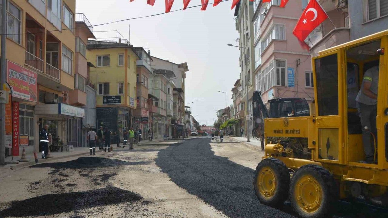 16 yıldır atıl vaziyette bulunan belediye bünyesindeki asfalt plentini yeniden faaliyete alan Belediye Başkanı Erkan Kara, altyapı dolayısıyla ulaşımda sıkıntı yaşanan ana caddelere plent makinesinde üretilen sıcak asfaltı yollara uyguluyor.