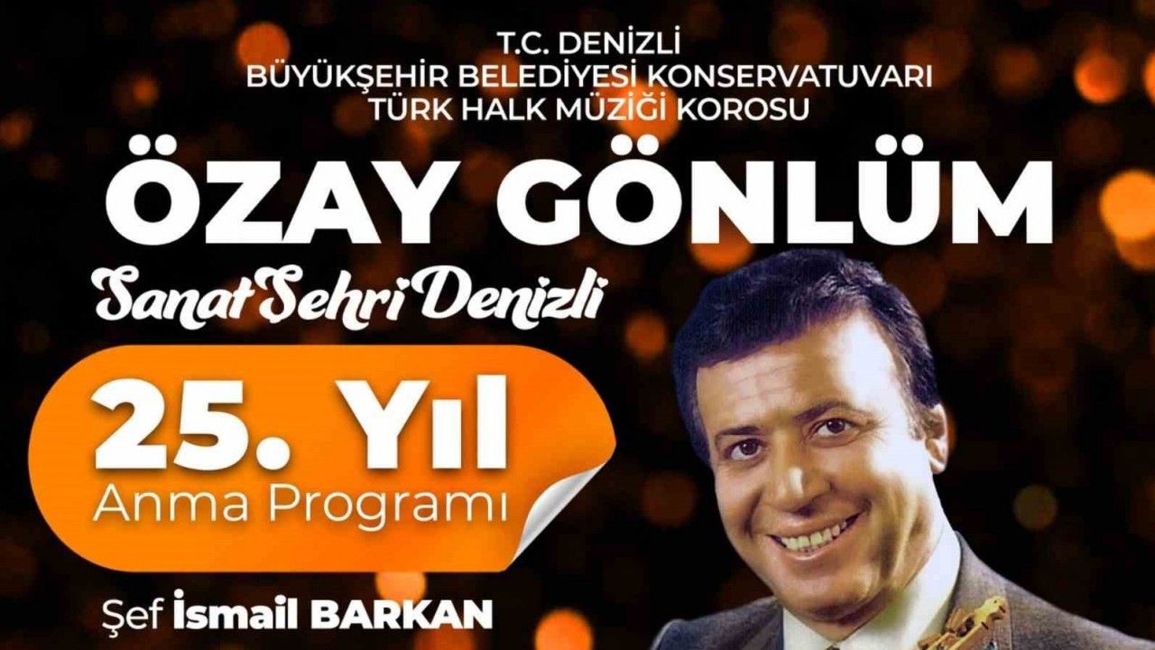 Denizli Büyükşehir Belediyesi, Türk halk müziğinin unutulmaz isimlerinden Özay Gönlüm’ü vefatının 25’inci yılında özel bir anma programı ile yâd edecek.