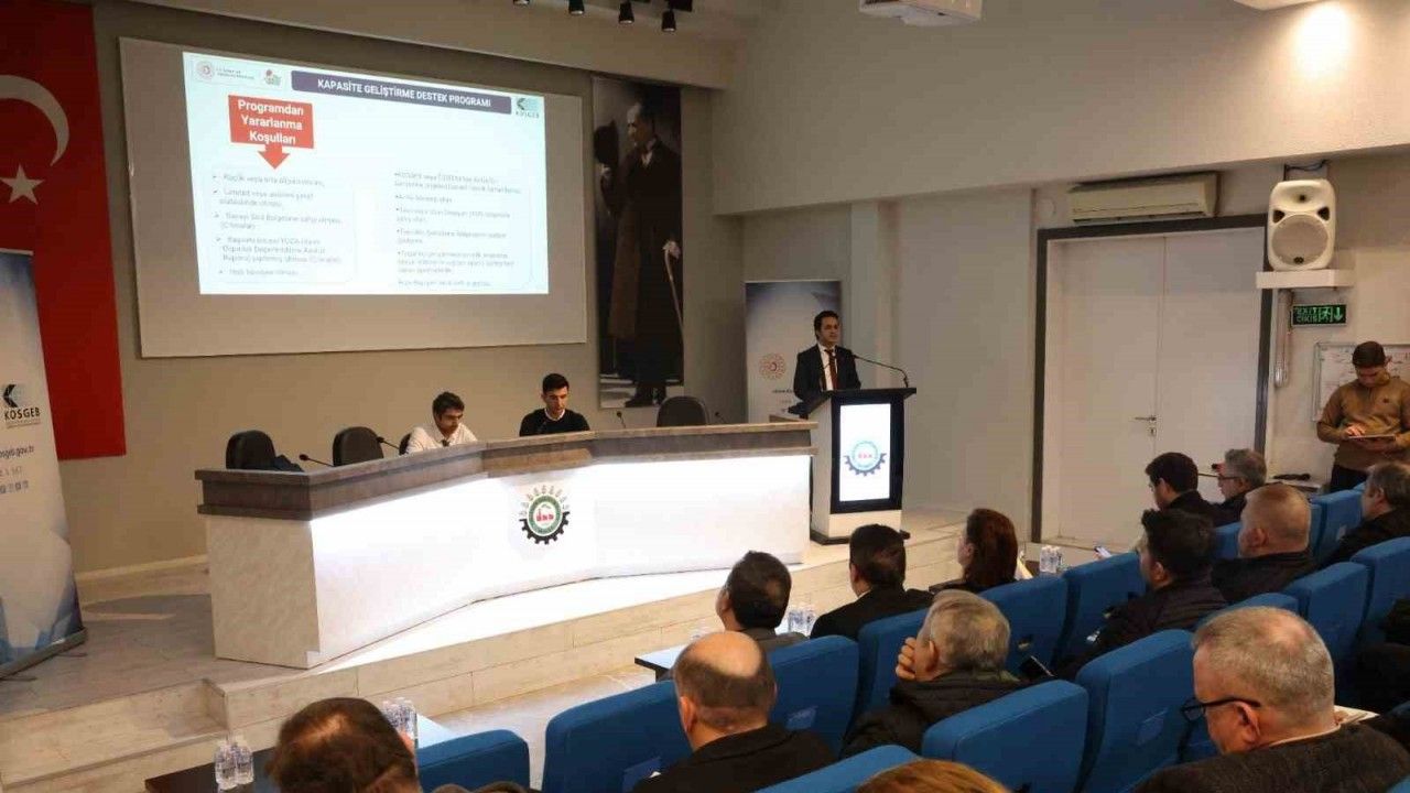 Denizli OSB konferans salonunda OSB’de faaliyet gösteren sanayicilere yönelik düzenlendiği “Küresel Rekabetçi ve Kapasite Geliştirme Destek Programı” konulu tanıtım toplantısında Kobi Uzmanı Ender Ayvacı katılımcıları gerçekleştirdiği sunumla destek programı hakkında bilgilendirdi.