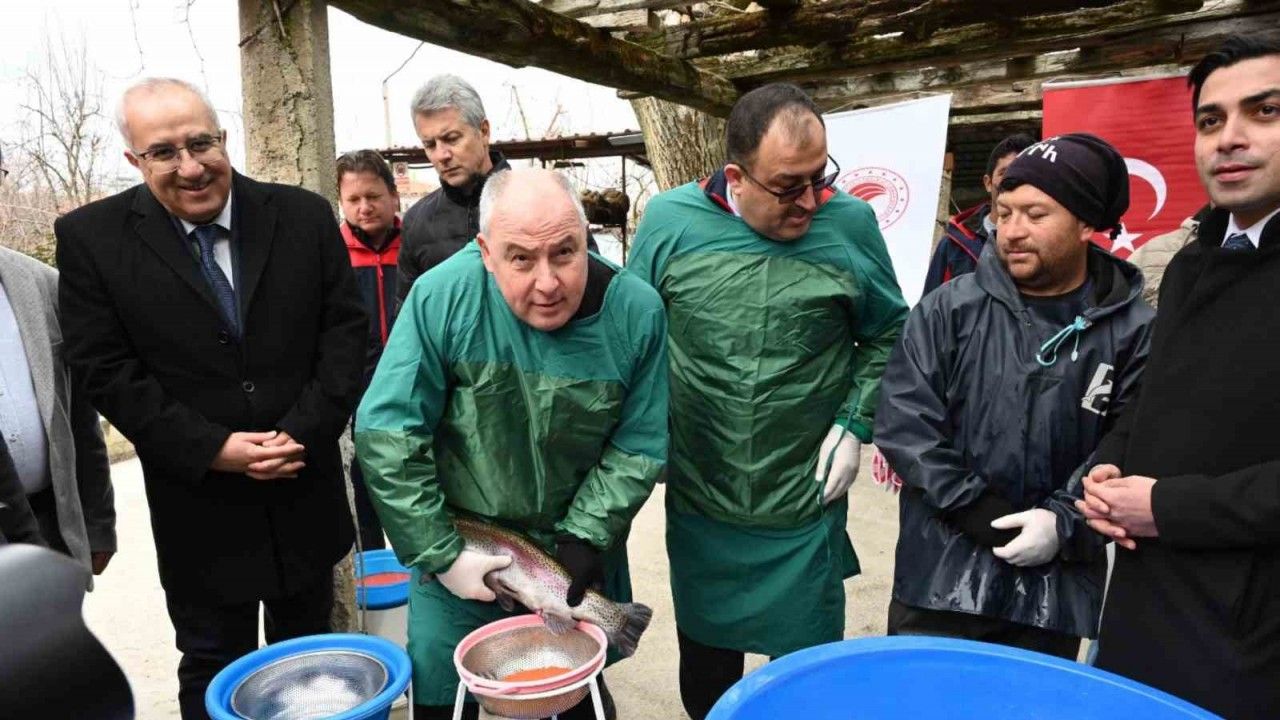 Denizli Valisi Ömer Faruk Coşkun, Çameli ilçesindeki alabalık üretim tesislerini ziyaret ederek balık yumurtası sağımı gerçekleştirdi.
