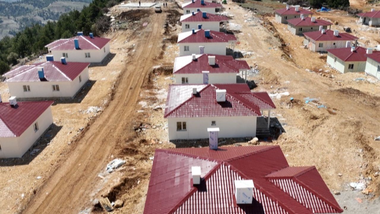 Asrın felaketinde yıkımın yaşandığı Kahramanmaraş’ın Dulkadiroğlu ilçesi Kazanlıpınar Mahallesi’nde 80 köy evinin yapımı sürüyor.