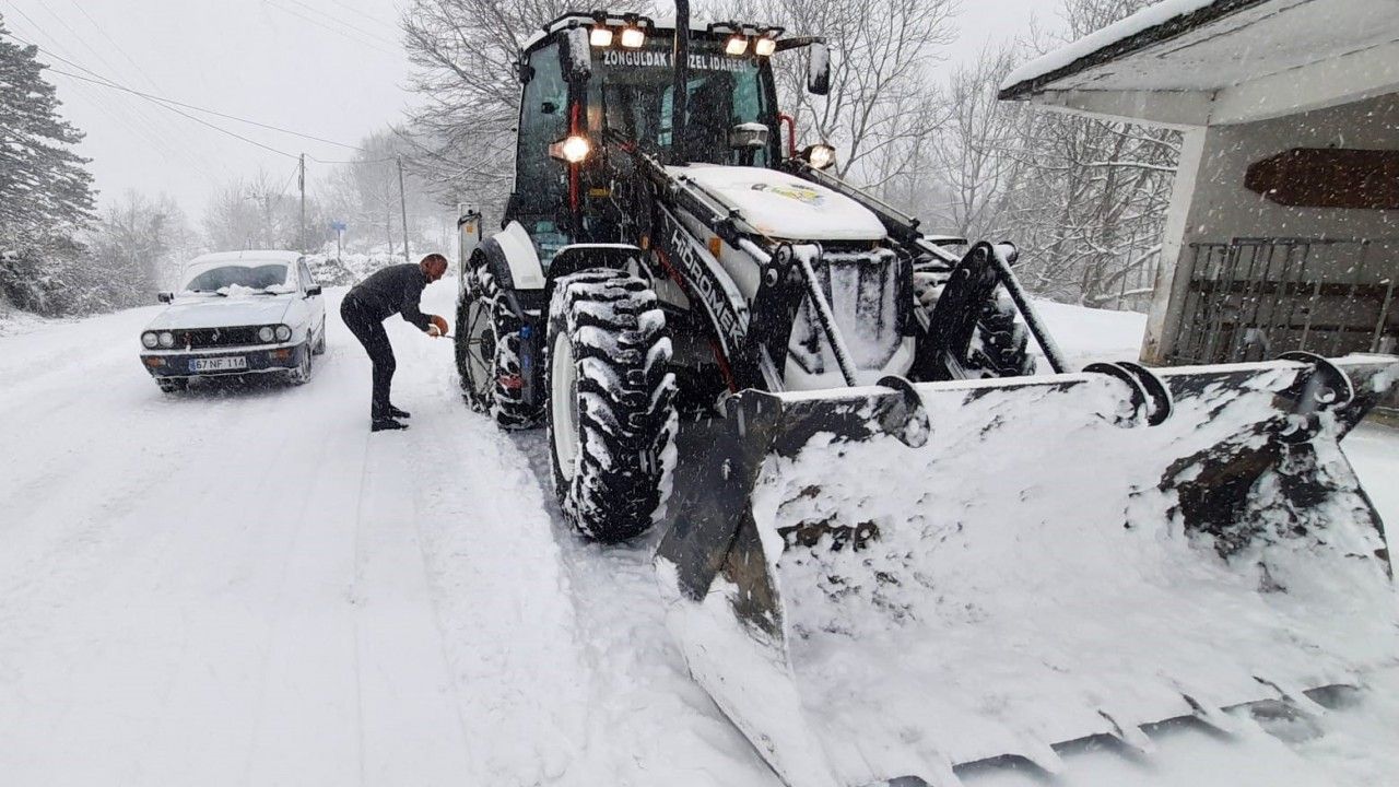 Zonguldak’ın Devrek ilkesine bağlı bazı köy yolları yoğun kar yağışı nedeniyle ulaşıma kapanırken ekipler kapanan yolları açmak için seferber oldular.