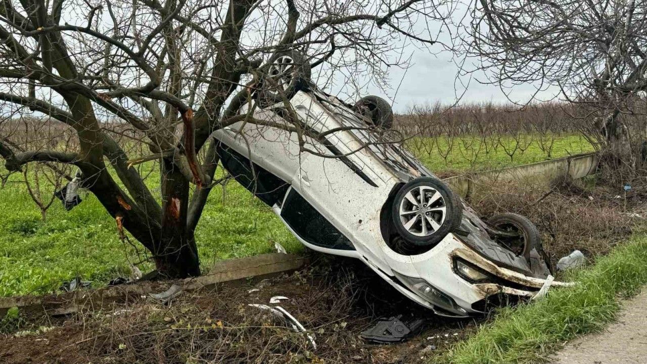 Bursa’nın İznik ilçesinde yağışlı hava sebebiyle aracın direksiyon hakimiyetini kaybeden sürücü takla attı.