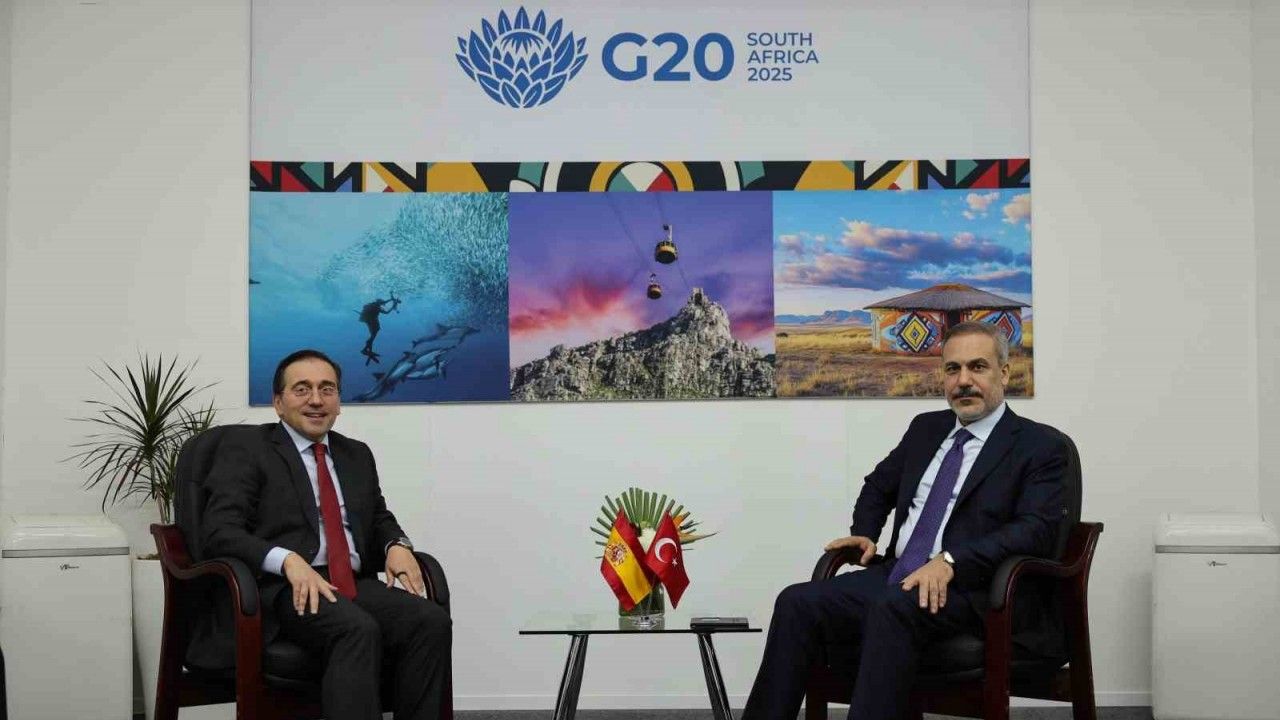 Dışişleri Bakanı Hakan Fidan, G20 Dışişleri Bakanları Toplantısı için geldiği Güney Afrika’da temaslarına devam ediyor. Bakan Fidan, İspanya Dışişleri, AB ve İşbirliği Bakanı Jose Manuel Albares Bueno ile bir araya geldi.