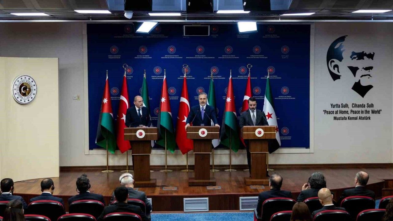 Dışişleri Bakanı Hakan Fidan, Ürdün Dışişleri Bakanı Eymen es-Safadi ve Suriye Dışişleri Bakanı Esad Hasan Şeybani ile Bakanlıkta gerçekleştirdikleri üçlü görüşme sonrası ortak basın toplantısı düzenledi.