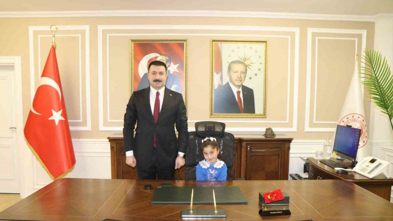 Ece Nur Gezgin, ilçenin sorunları ve çözüm yolları hakkında Kaymakam Karalı’na talimatlarını sunarken, günün anlam ve önemi dolayısıyla çeşitli hediyelerle onurlandırıldı. Kaymakam Mustafa Karali ve eşi Elif Karaliİ’nin katılımıyla, İlçe protokolü, öğrenciler ve halkın da yer aldığı coşkulu kutlamalar Saygı Duruşu ve İstiklal Marşı ile başladı.