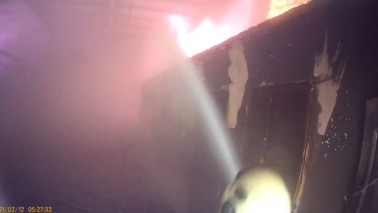 Depodaki yangını söndürme anları ise itfaiye erinin kask kamerasına yansıdı. İçerideki alevleri söndürme anları kask kamerasıyla kaydedildi.