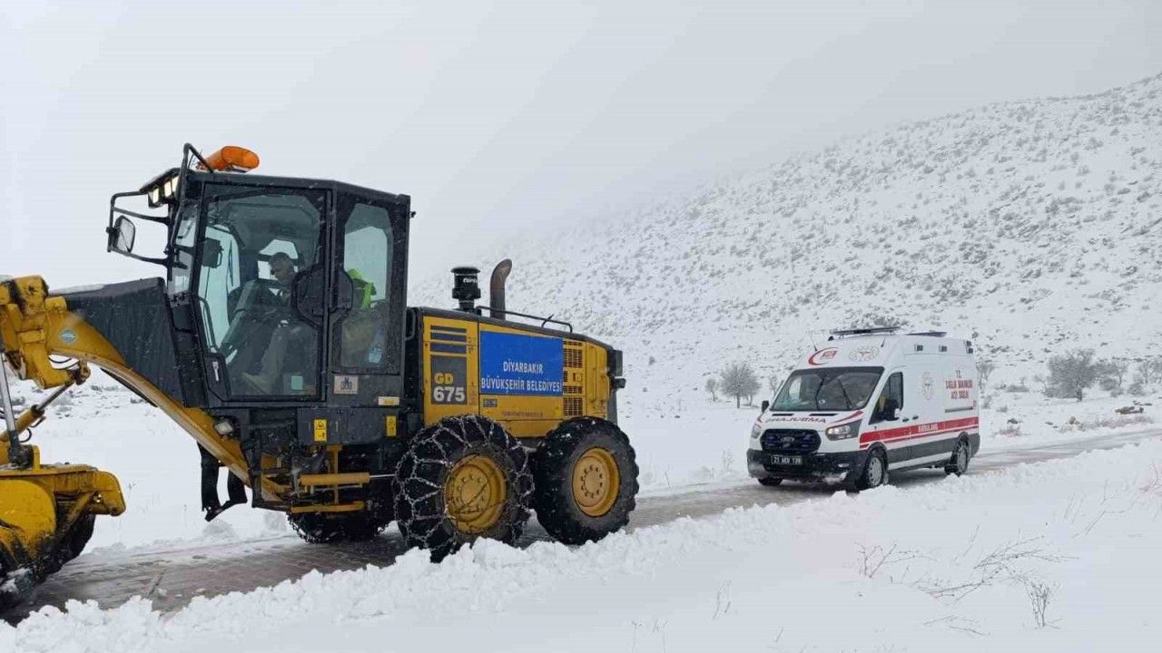 Diyarbakır Büyükşehir Belediyesi, Hani ve Çınar ilçelerinde etkili olan kar yağışı nedeniyle kapanan yolları açarak, 2 hastanın hastaneye ulaştırılmasını sağladı.