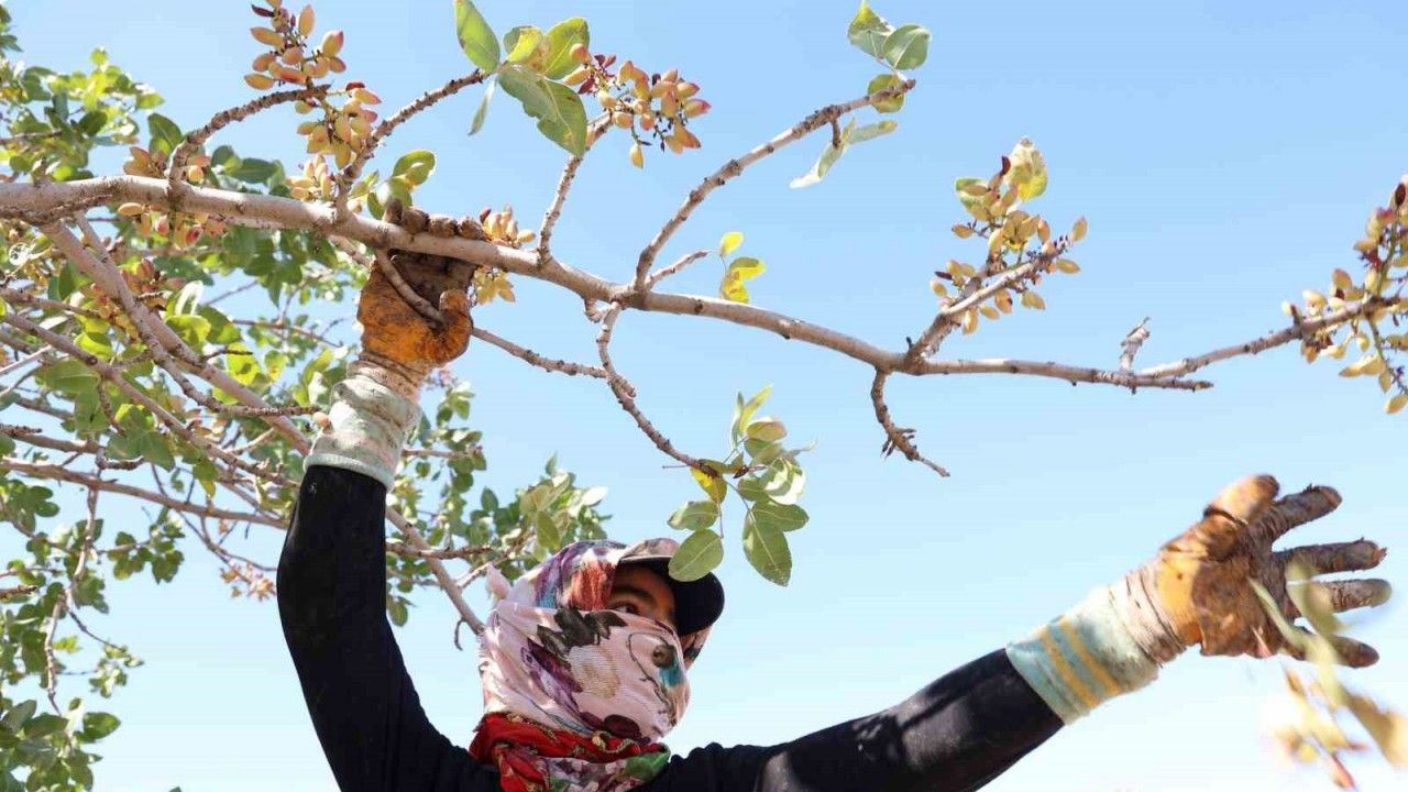 Kentte sıcak hava dalgası mevsim normallerinin üzerinde seyretmeye devam ediyor. 40 derece üzeri bulan sıcak havada fıstık toplayan mevsimlik işçilerin mesaisi, sabah 07.00’de başlayıp, 17.00’ye kadar devam ediyor.