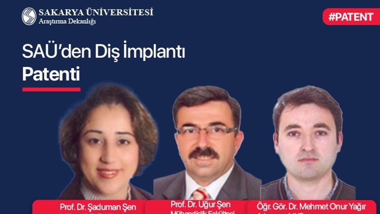 Sakarya Üniversitesi Mühendislik Fakültesi Öğretim Üyeleri Prof. Dr. Şaduman Şen, Prof. Dr. Uğur Şen ve Adapazarı MYO Öğr. Gör. Dr. Mehmet Onur Yağır’ın geliştirdiği "Diş İmplantı Komplesinde Gerçek Diş Elasto-plastik ve Sınırlı Visko-elastik Hareketine Uyumlu Küresel ve Eliptik Geometrili Abutment Kullanımı" başlıklı patent başvurusu tescil edildi.