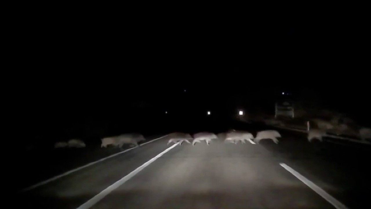 Gölbaşı istikametinden Adıyaman istikametine gelmekte olan bir aracın önüne Şambayat Beldesi yakınlarında domuz sürüsü çıktı. Gecenin karanlığında Adıyaman- Gölbaşı Karayoluna inen domuz sürüsünü son anda fark eden araç sürücüsü sürüye çarpmamak için fren yaparak güçlükle durdu. Bu esnada arkadan gelen bir motosiklet sürücüsü ise yaptığı frenlere rağmen duramayarak ani bir refleksle sürüye ve önünde duran araca çarpmamak için yolun karşı şeridine geçti. Yaşanan olay aracın kamerasına ise saniye saniye yansıdı. Karşı şeride geçen motosiklet daha sonra yeniden kendi şeridine geçerek yoluna devam etti. Bir süre duran trafik, sürünün yoldan çıkmasının ardından devam etti.