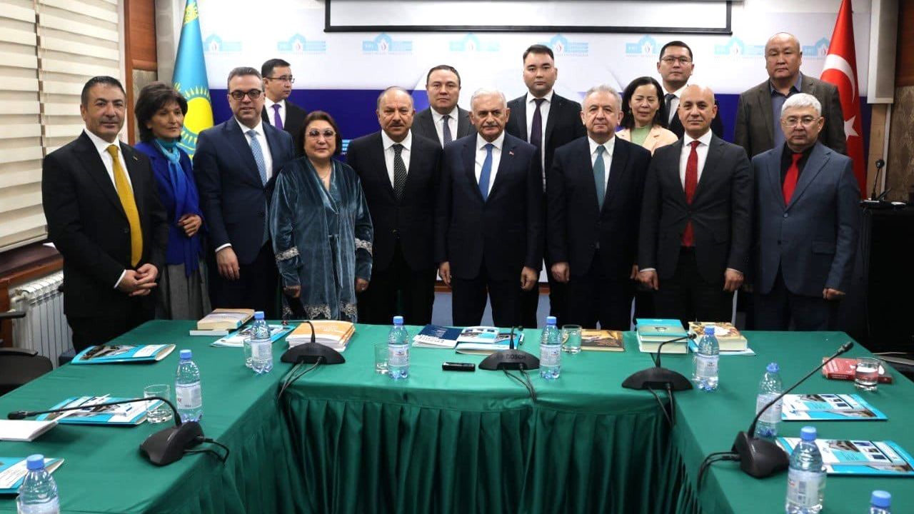Heyetin El Farabi Kazak Milli Üniversitesi’ni ziyaretinde Türkiye’nin son Başbakanı ve TDT Aksakallar Heyeti Başkanı Binali Yıldırım’a fahri profesörlük ünvanı verildi. Başkan Erdoğan bu anlamlı törende de Yıldırım’a eşlik etti. Ayrıca Hoca Ahmet Yesevi Uluslararası Türk-Kazak Üniversitesi Avrasya Araştırma Enstitüsü’nü de ziyaret ettiler.