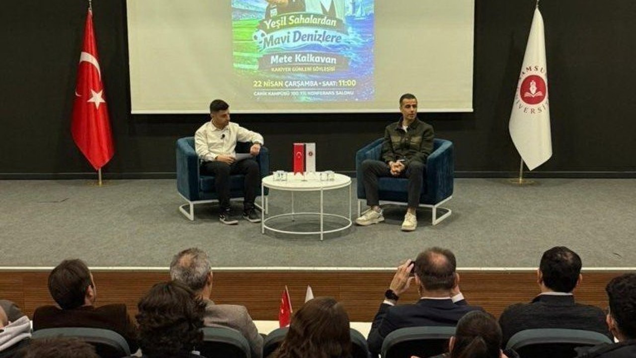 FIFA kokartlı eski hakem Mete Kalkavan, söyleşide hakemlikten iş dünyasına ve denizcilik sektörüne uzanan kariyer sürecini anlattı. Sahalarda kazandığı karar verme, zaman yönetimi, disiplin ve adalet anlayışının iş hayatına doğrudan yansıdığını belirten Kalkavan, iyi bir yöneticinin adil olması, doğru iletişim kurması ve zamanı etkin kullanması gerektiğini vurguladı. Öğrencilerin soruları üzerine hakemlik döneminden örnekler paylaşan Kalkavan, zorlu anlarda doğru karar alabilmenin sabır ve güçlü bir sorumluluk bilinci gerektirdiğini ifade etti.