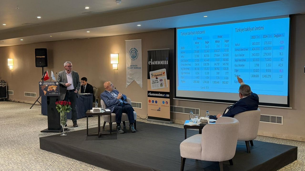 Mersin Ticaret Borsası Yönetim Kurulu Başkanı Abdullah Özdemir, Ekonomi Gazetesi Genel Koordinatörü Vahap Munyar ve Ekonomi Gazetesi Tarım Yazarı Ali Ekber Yıldırım’ın konuşmacı olarak yer aldığı panelde sektörün dünü, bugünü ve geleceği konuşuldu. Mersin Ticaret Borsası Yönetim Kurulu Başkanı Abdullah Özdemir tarım sektöründe Mersin’in önemine değinerek, “Bakliyatın başkenti Mersin’dir. Kıymetini bilmek gerekiyor. Bu nedenle bakliyat üretimine desteğin artması gerekiyor” dedi.