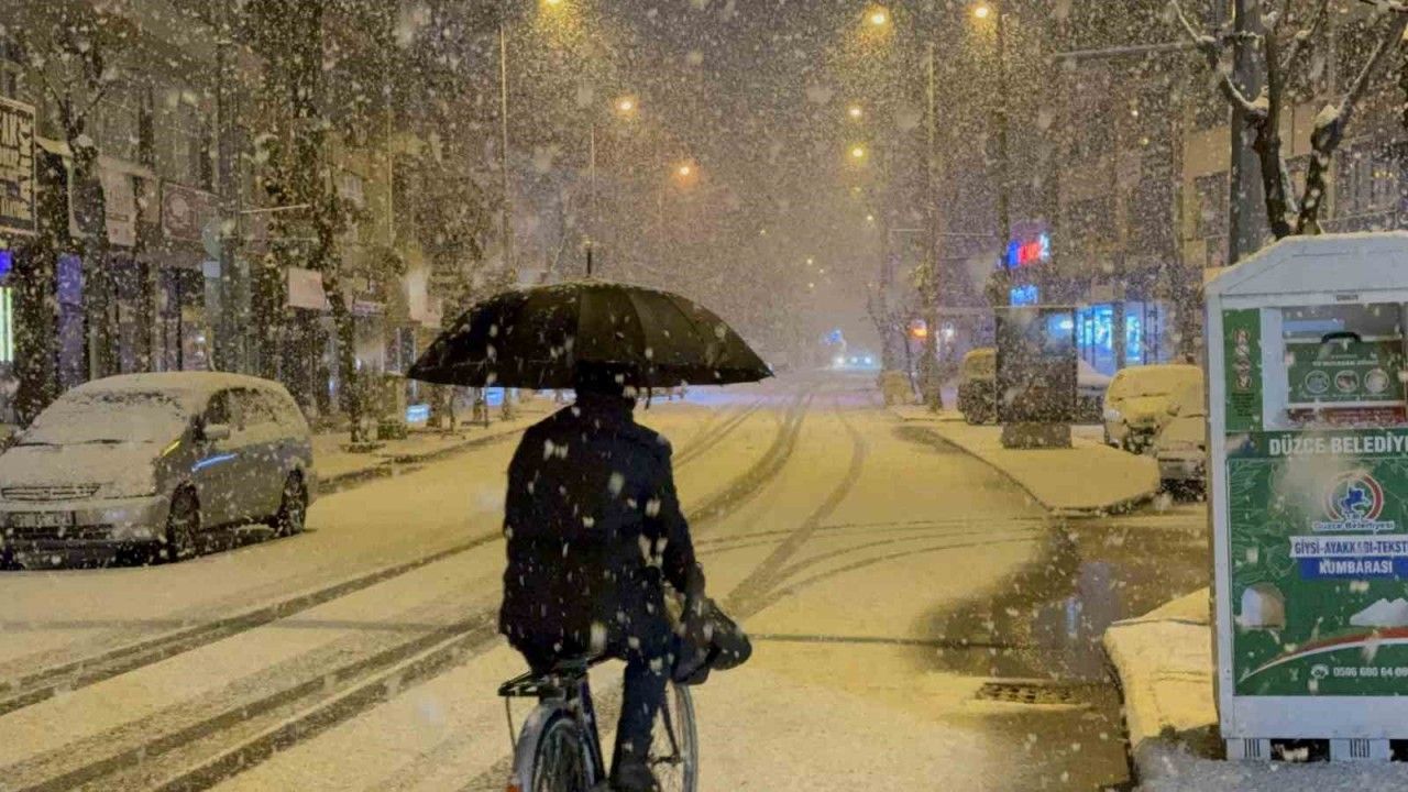 Meteoroloji’den yapılan uyarının ardından Düzce şehir merkezinde yoğun kar yağışı başladı.