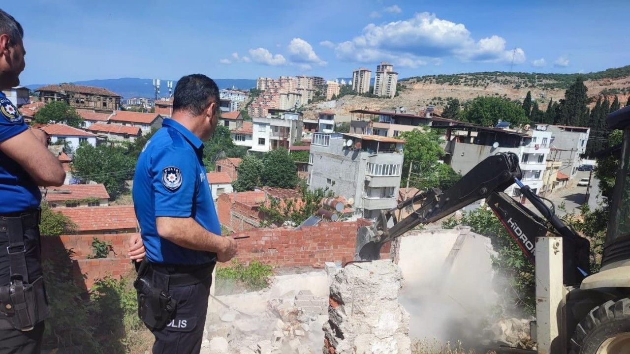 Balıkesir’in Edremit ilçesinde kötü amaçlı kullanımların ve güvenlik risklerinin önüne geçmek amacıyla metruk bir bina kontrollü şekilde yıkıldı.