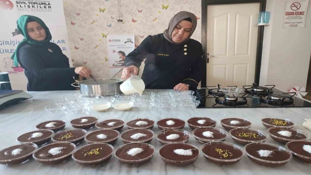 Girişimci Kadınlar Üretime Hazırlar projesi kapsamında dezavantajlı mahallelerde yaşayan ve maddi sıkıntı yaşayan 18-45 yaş aralığındaki kadınlara ücretsiz olarak haftada 2 gün yemek ve pastacılık eğitimi verilmeye devam ediyor. Projeye başvuru yapan 200 kadına şefler tarafından eğitim verilmeye devam ediyor. Kadın kursiyerlere şef Nahide Erkan tarafından spangle ve keşkül eğitimi, şef Ali Sazkaya tarafından da açma ve poğaça yapım eğitimi verildi.İçişleri Bakanlığı tarafından desteklenen proje kapsamında kadınlara gastronomi eğitimi verilmeye devam ettiğini söyleyen şef Nahide Erkan, “Hazırladığımız proje kapsamında 30 dezavantajlı kadına eğitim verecektik. Talep çok geldi, 200 kadınımız başvuru yaptı. Şartları tutan ders saatleri uyan 100 kadınla eğitime başladık. Kurslarımız üç haftadan bu yana devam ediyor. Her hafta Salı ve Cuma günleri eğitime devam ediyoruz” dedi.