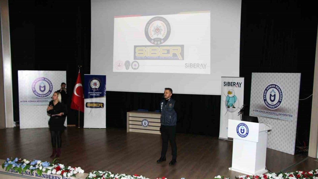 Aydın İl Emniyet Müdürlüğü ve üniversite arasında imzalanan protokol kapsamında, Atatürk Kongre Merkezi İsa Bey Salonu’nda Eğitim Fakültesi öğrencilerine yönelik Siber Suçlar ve Siber Güvenlik Konulu Seminer düzenlendi. ;