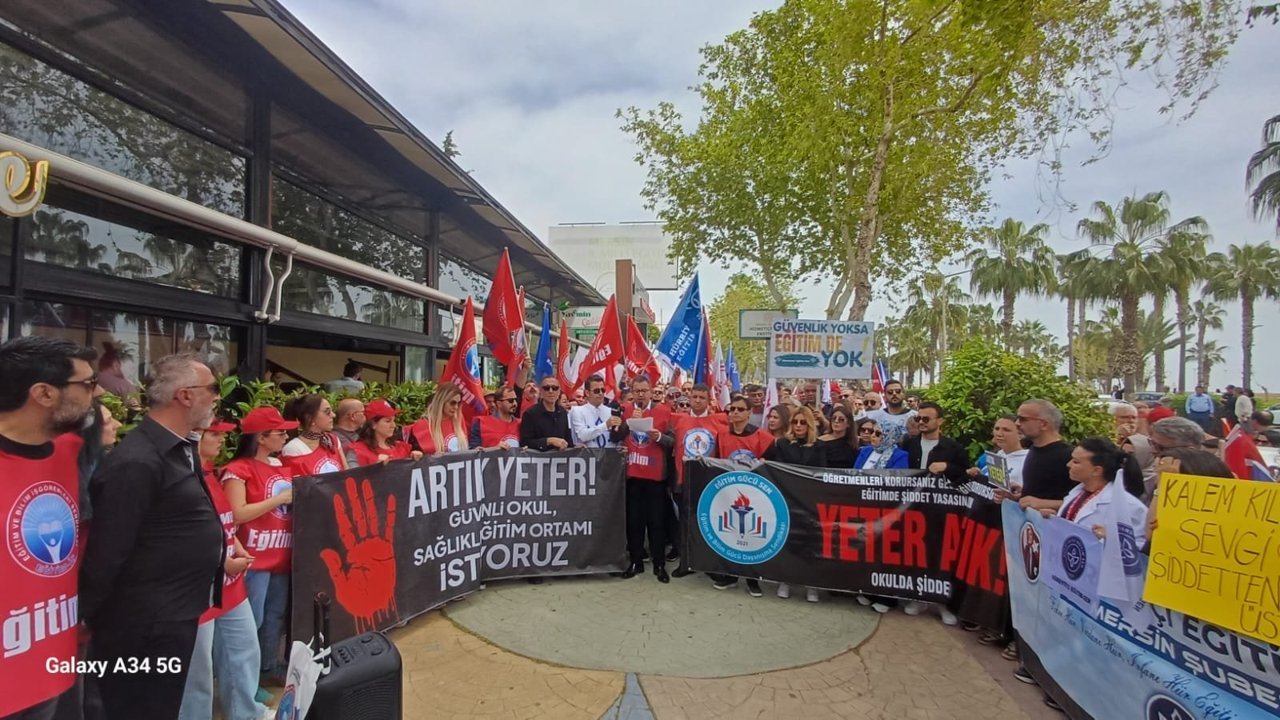 Birleşik Kamu İşgörenleri Sendikaları Konfederasyonu’na (Birleşik Kamu İş) bağlı Eğitim ve Bilim İşgörenleri Sendikası (Eğitim İş) Mersin Şubesi üyeleri, Mersin İl Milli Eğitim (MEB) Müdürlüğü önünde toplanarak, Şanlıurfa’nın Siverek ilçesinde yer alan Ahmet Koyuncu Mesleki ve Teknik Anadolu Lisesi’ne, okulun eski öğrencisi tarafından ateşli silahla saldırı yapılmasına ilişkin basın açıklama gerçekleştirdi. Açıklamayı Eğitim İş Mersin Şube Başkanı Yakup Tekin okudu.