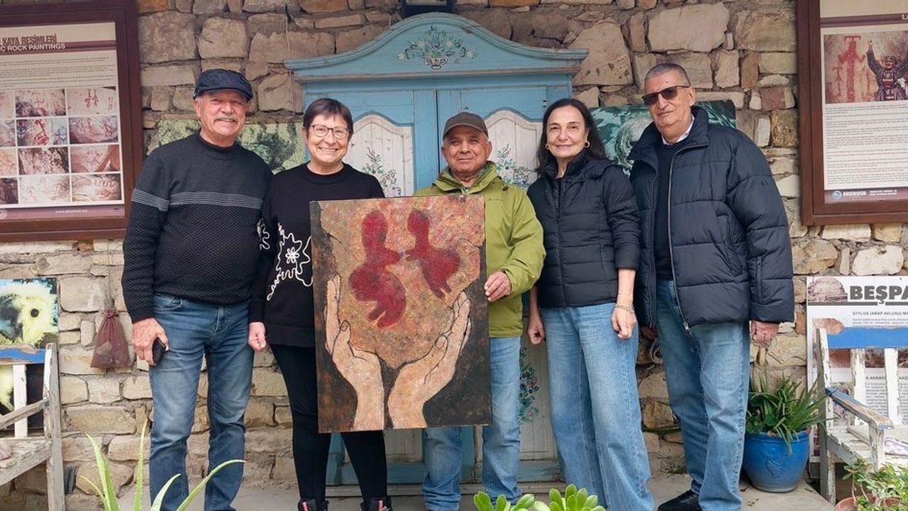 Geçmişinde birçok medeniyete ev sahipliği yapan ve adeta açık hava müzesi özelliği taşıyan Aydın, her geçen gün cazibesini artırmaya devam ederken, doğal güzellikleri ve tarihi yapısıyla dikkat çeken yerlerden olan Latmos bölgesi de tarihin gizemini keşfetmek isteyen yerli ve yabancı turistlerin rotasına giriyor. Bu kapsamda bölgenin korunması ve tarihi öneminin ortaya çıkarılması adına çalışmalar yürüten Ekosistemi Koruma ve Doğa Sevenler Derneği’ni (EKODOSD) ziyaret eden ressam Ayşe Mesude Kumbasar ise doğaseverlere anlamlı bir jest yaptı. Kumbasar, kaya resimlerine dikkat çeken ‘Latmoslu Kadın’ yağlı boya tablosunu EKODOSD Başkanı Bahattin Sürücü’ye teslim ederek, derneğe hediye etti.