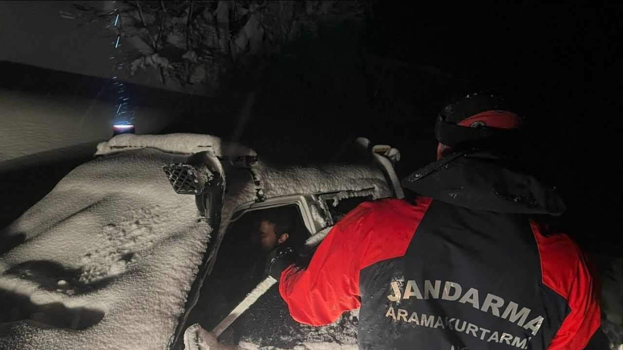 1 adet kar üstü motorlu JAK timi, 2 Jandarma Asayiş timi, UMKE ve AFAD personelleri ile ormanlık alanda çalışma yapan ekipler, mahsur kalan Arda P. ile Erol B. donmak üzereyken kurtardı. Kurtarma anı ise saniye saniye GoPro kamerasına yansıdı.