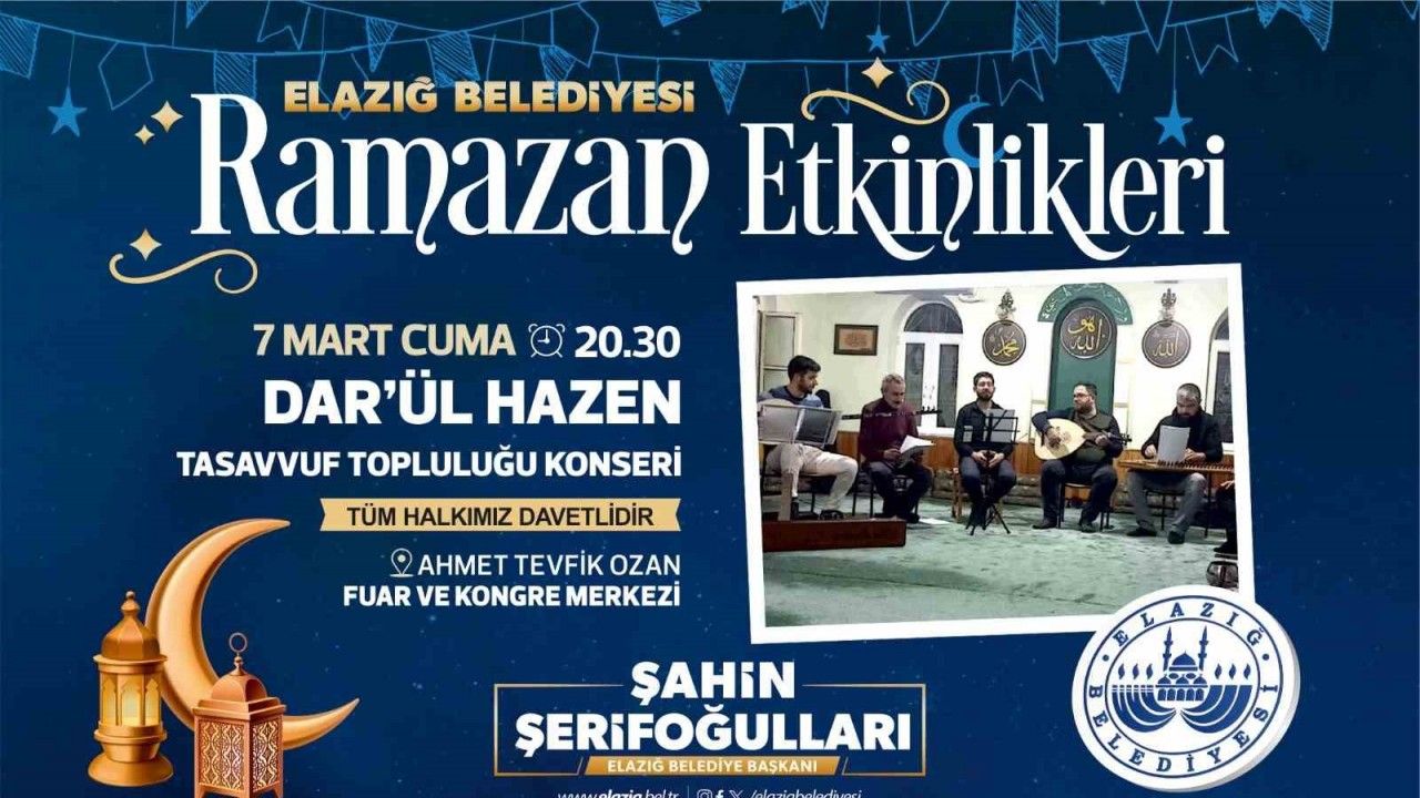 Elazığ Belediyesi Ramazan etkinlikleri kapsamında Dar’ül Hazen tasavvuf ekibi sahne alacak.