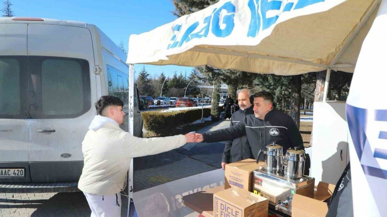 Elazığ Belediyesi, ÖSYM tarafından düzenlenen Milli Savunma Üniversitesi (MSÜ) askeri aday belirleme sınavı öncesinde, adaylara ikramlarda bulunarak emanet kabul noktası desteği sağladı.