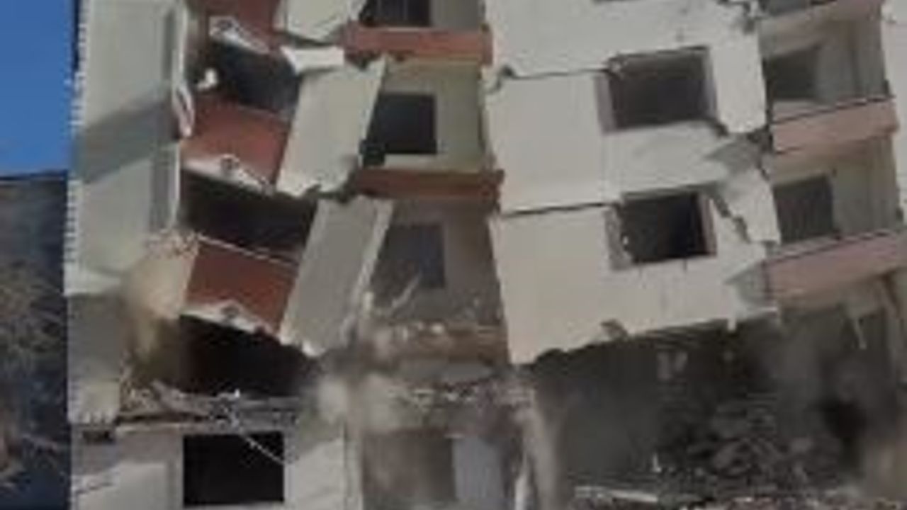 Kahramanmaraş’ta 6 Şubat 2023’te meydana gelen yıkıcı depremlerden etkilenen iller arasından bulunan Elazığ’da ağır hasarlı binaların yıkımı devam ediyor. Bu çerçevede, Sürsürü Mahallesi’nde yıkımına başlanan 5 katlı bina, iş makinesinin makasını vurmasıyla bir anda yerle bir oldu. O anlar ise cep telefonu kamerası ile kaydedildi.