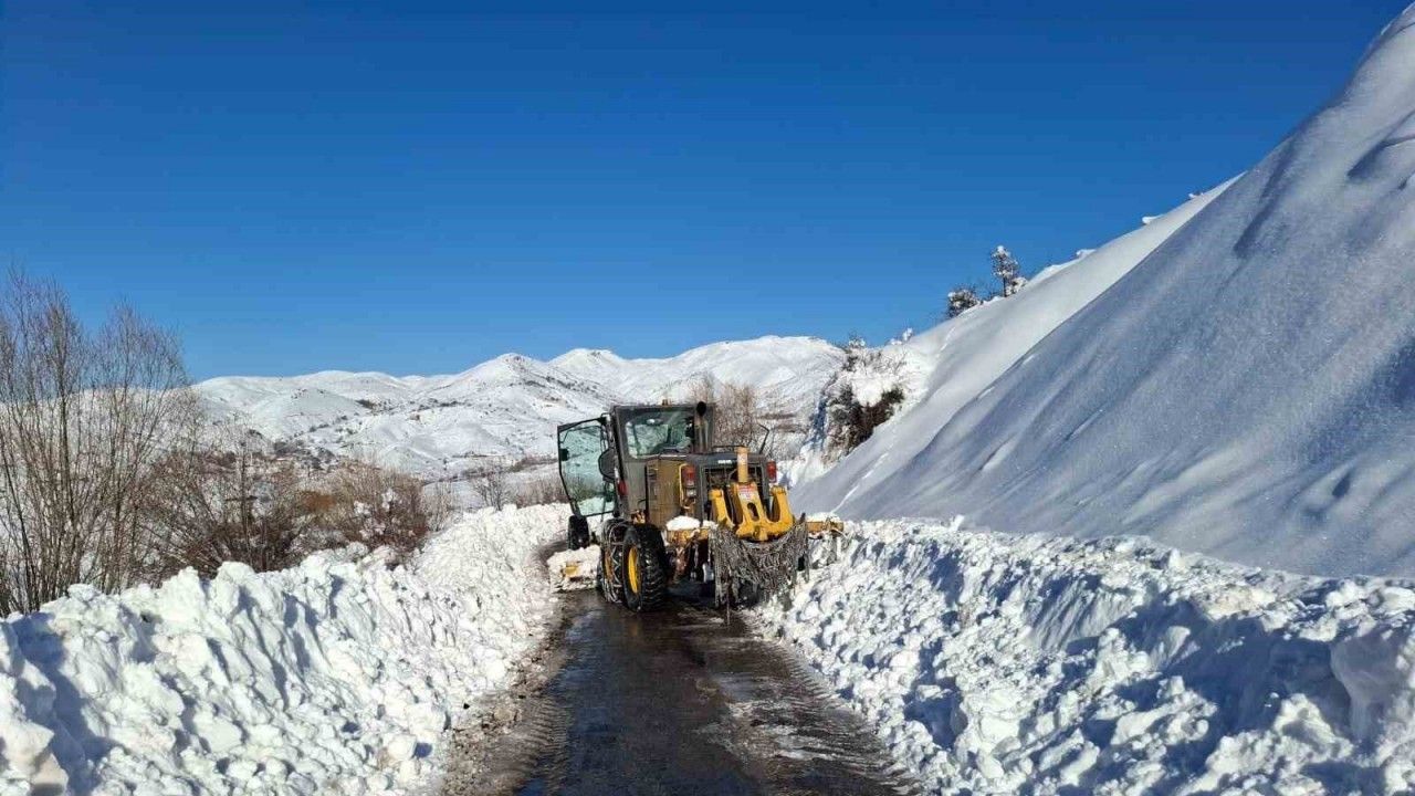 Elazığ’da kar yağışı sonrasında kapanan köy yolları için ekiplerin çalışması sürüyor.