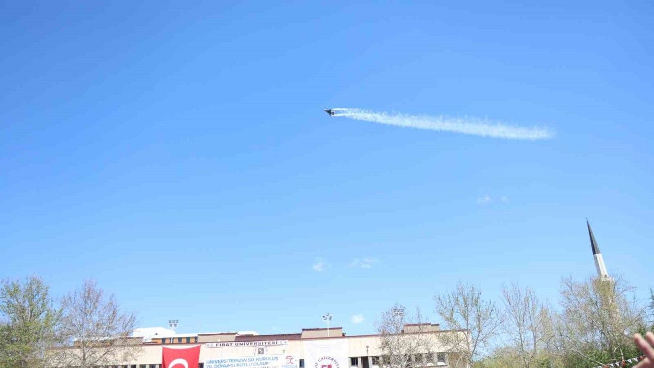 Elazığ’da Fırat Üniversitesinin 50’nci yıl etkinliklerinde Türk Hava Kuvvetlerinin gururu SOLOTÜRK gösterisi nefes kesti.