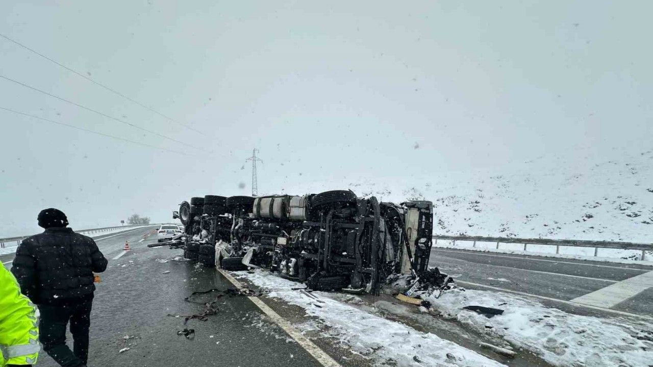 Kaza, Elazığ-Diyarbakır karayolunda meydana geldi. Edinilen bilgiye göre, E.G. idaresindeki 34 FPA 646 plakalı tır, karlı yolda direksiyon hakimiyetini kaybederek yan yattı. Kazada sürücü hafif yaralandı. Kazayı gören diğer sürücülerin haber vermesi üzerine olay yerine sağlık ve polis ekipleri sevk edildi. Yaralı, olay yerinde yapılan ilk müdahalelerin ardından ambulansla hastaneye kaldırılarak tedavi altına alındı.