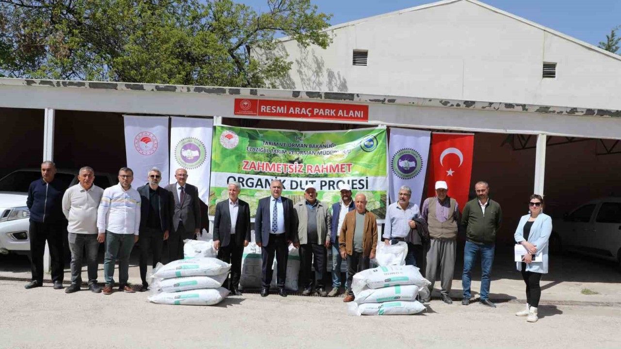 Elazığ’da ‘Zahmetsiz Rahmet Organik Dut’ Projesi çerçevesinde üreticilere 2,5 ton gübre dağıtıldı.
