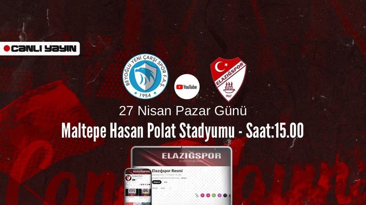 Elazığspor’un deplasmanda Beyoğlu Yeni Çarşı ile oynayacağı maç Elazığspor Youtube Katıldan canlı yayınla ekranlara getirilecek.